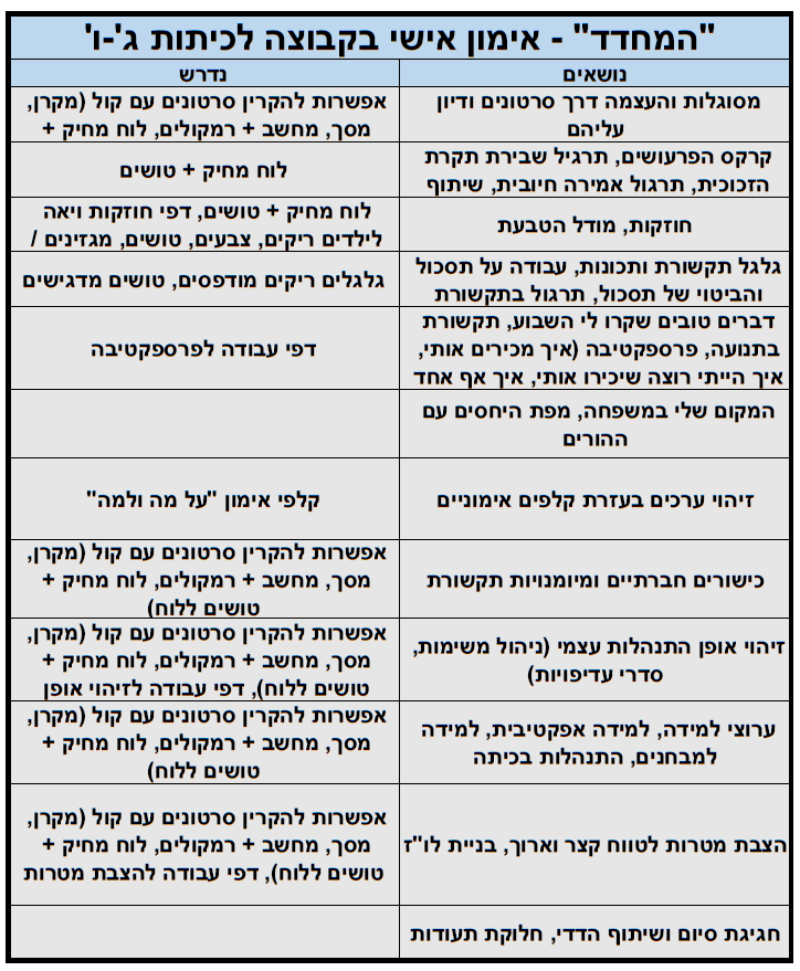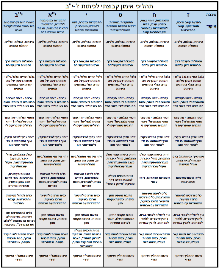 בנוסף, רוכשים התלמידים כלים לחיזוק החוסן הריגשי להתמודדות במצבי לחץ, מצבי קיצון (תסכול, כעסים) תוך נטרול פרדיגמות חוסמות והעלאת הביטחון והדימוי העצמי.